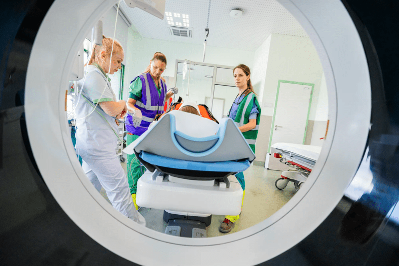 Als de toestand van de patiënt het toelaat, voert het traumateam gedetailleerde medische beeldvorming uit om tot de correcte diagnose te komen. Voorbeelden van zulke onderzoeken zijn een CT-scan of MRI. Met een supersnelle lift (ook wel ‘hotline’ genoemd) brengt het team onze patiënten in slechts 90 seconden van Spoed naar Medische beeldvorming en terug. Zo gaat geen kostbare tijd verloren.
