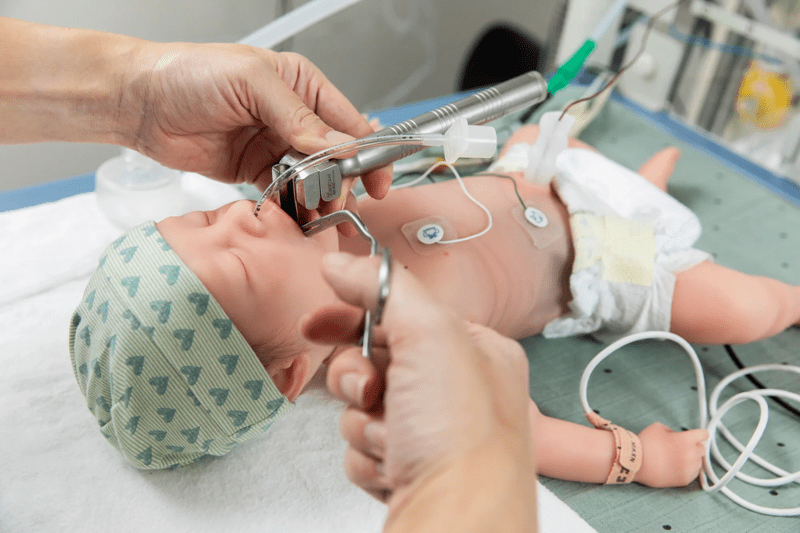 De pop kan uiteenlopende complicaties simuleren, van onvoldoende longontplooiing tot het inademen van de eerste ontlasting, een luchtlek of ademhalingsproblemen. Alle handelingen worden geregistreerd in de computer. Zo krijgen de zorgverleners na het geoefende scenario nauwkeurige feedback, zodat ze hun vaardigheden kunnen verfijnen.