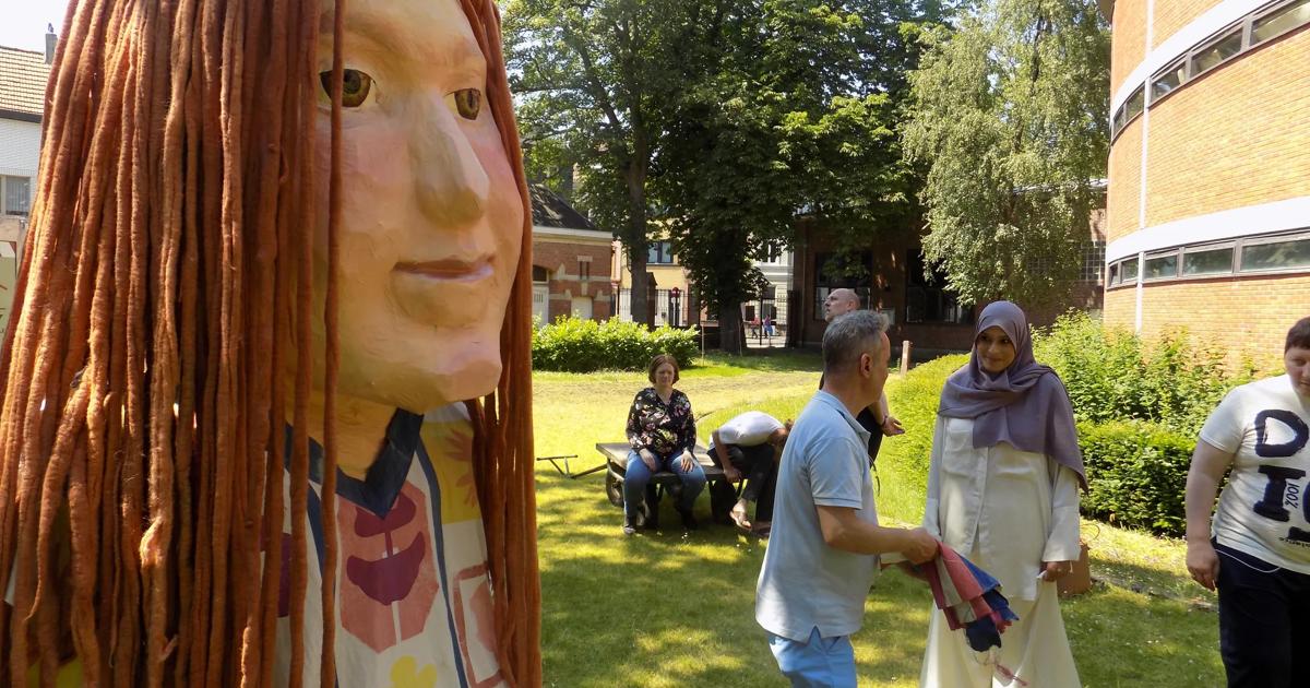 “Samen met een vijftiental patiënten hebben we een jaar gewerkt aan de geboorte van Stuifke. Het langere tijd bezig zijn met een erfgoedproject (de reus) en de bijhorende ambachten (het maken en schilderen) zorgden voor een gevoel van samenhorigheid. We zijn gestart vanuit het idee dat iedereen een kwetsbaarheid met zich meedraagt. Tijdens de samenwerking verdwenen de diagnoses naar de achtergrond. Bij elk onderdeel van de realisatie waren de patiënten betrokken: van de uitwerking van het concept, de ontwikkeling van het verhaal, de bouw van het skelet en de productie van de kledij. De kers op de taart is het voorstellen van het eindresultaat.”