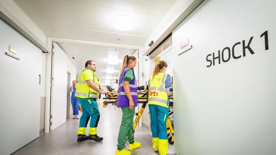 - voor grotere letsels of levensbedreigende aandoeningen. Deze zogenoemde reanimatiekamer is uitgerust met alle voorzieningen voor beademing en andere levensreddende apparatuur.